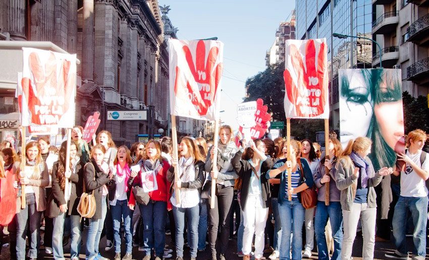 Según informa la agencia AICA, casi mil personas, en su mayoría jóvenes mujeres, se reunieron en la esquina de Rivadavia y Riobamba con carteles con leyendas como «Yo voto por la vida» y retratos de niños con la frase «No me abortes».