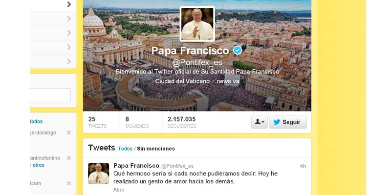 El Papa Francisco ha conquistado a los medios de comunicación y la opinión pública musulmanes a través de Twitter. La noticia proviene del simposio celebrado en Amman, Jordania, del 10 al 11 de junio por el Centro de Estudios y Comunicación Católicos, en colaboración con el Pontificio Consejo para las Comunicaciones Sociales.